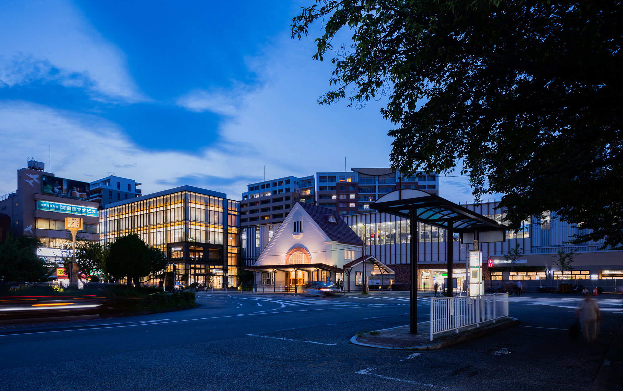 JR中央線国立駅前のランドマークは、大正時代の建築当時と同じ姿で再建された旧国立駅舎。よって、南口にビルを建設する本プロジェクトでもっとも重要な課題は、国立市民が愛する旧国立駅舎および駅前の景観に調和し、駅前空間の魅力をさらに向上させることだった。