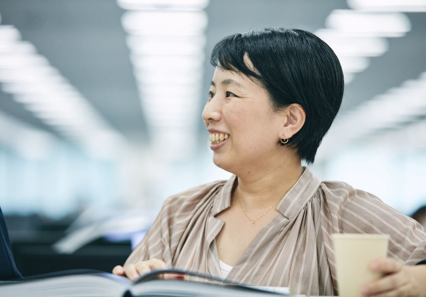 出せるように - 育児休職が明けて職場復帰した頃は、自分の生活すらままならない中、どのように仕事に取り組めるか不安でした。そんな中、育児をしながらどう仕事に取り組むかなど、たくさんの先輩方に悩みを聞いてもらい助言をいただいたことで、とても安心し、当社の社風のよさを再認識しました。今は、働き方が以前と変わったことで、自分を俯瞰する力、限られた時間の中でより高いパフォーマンスを出せる力が身につきつつあると感じています。