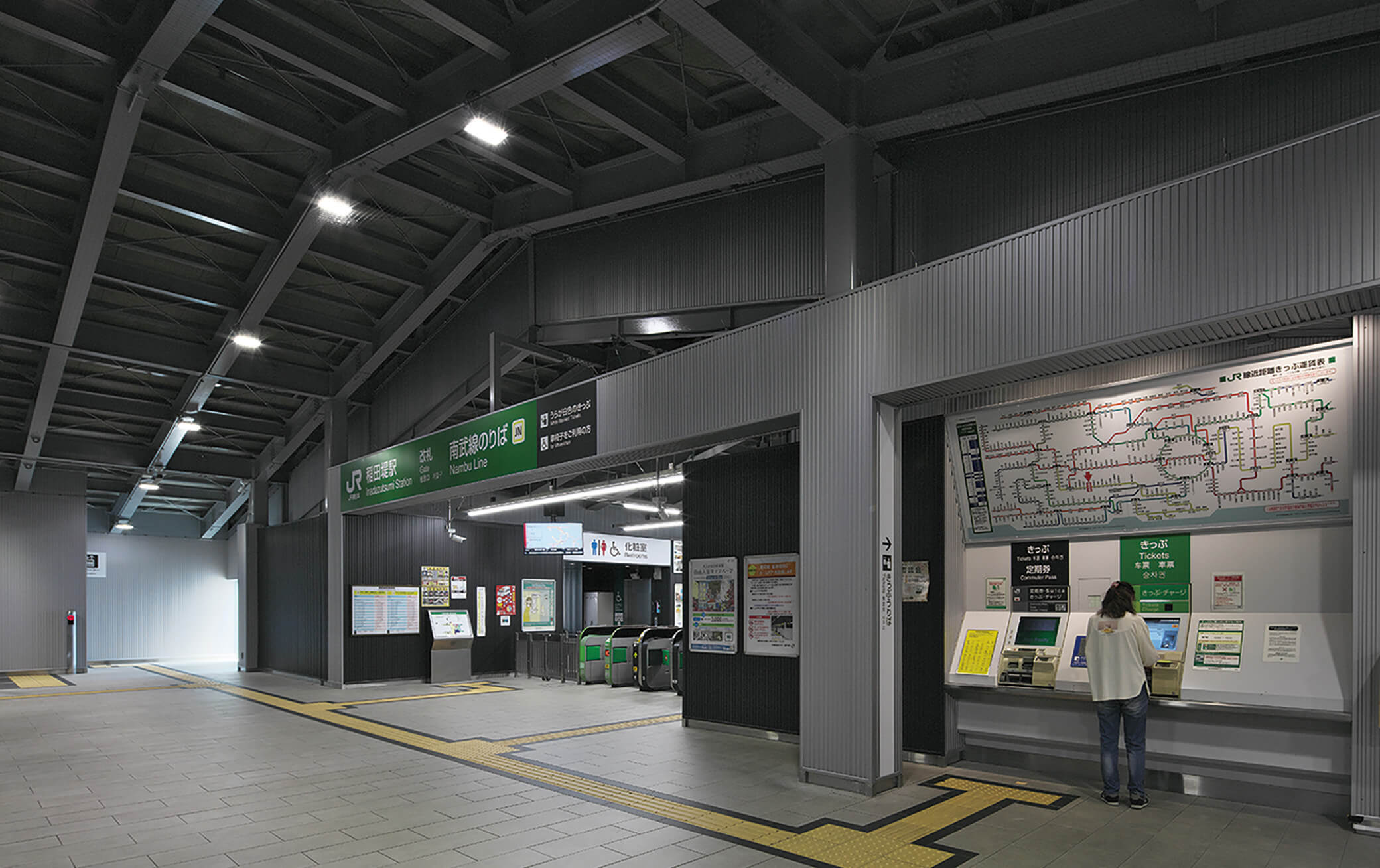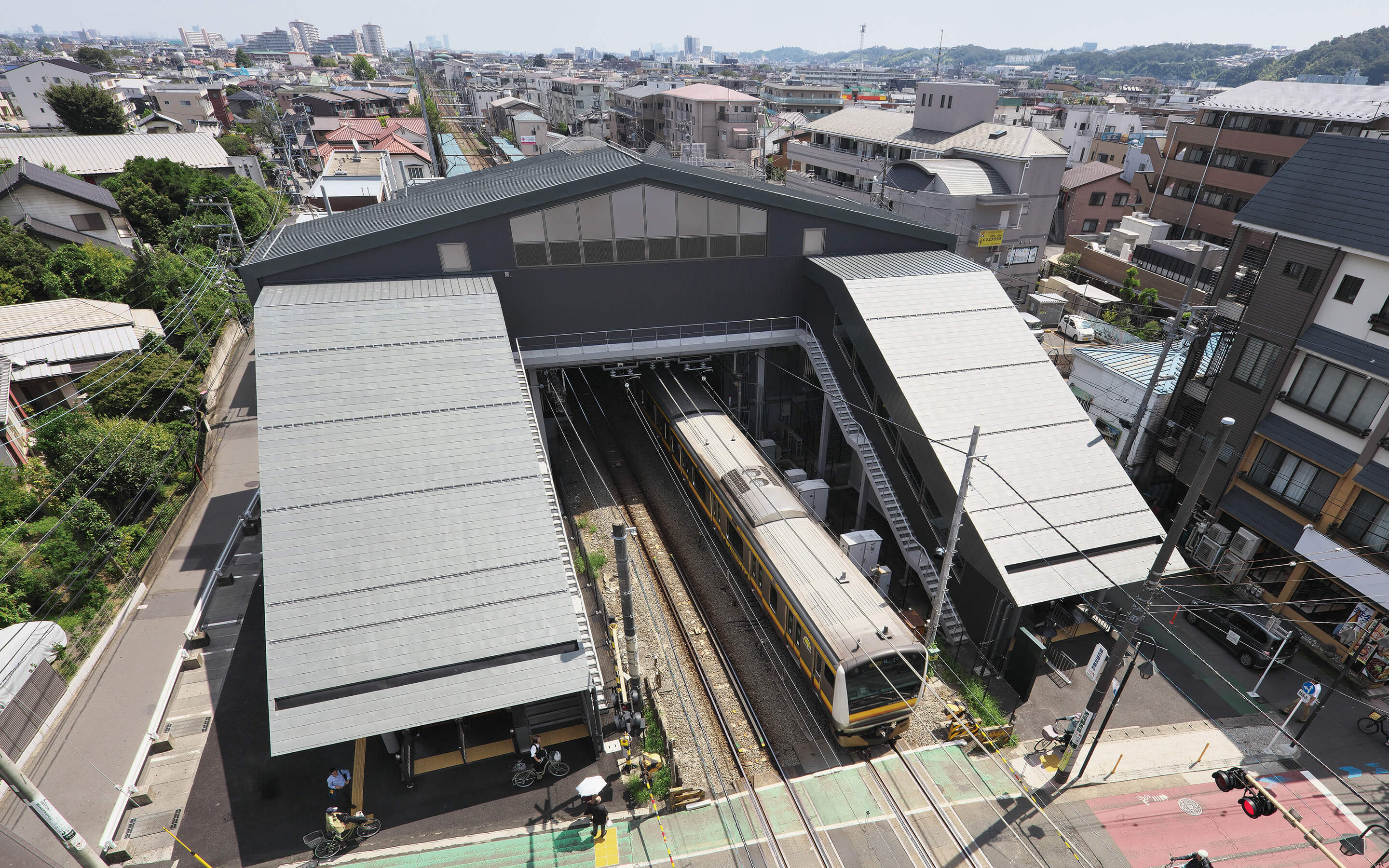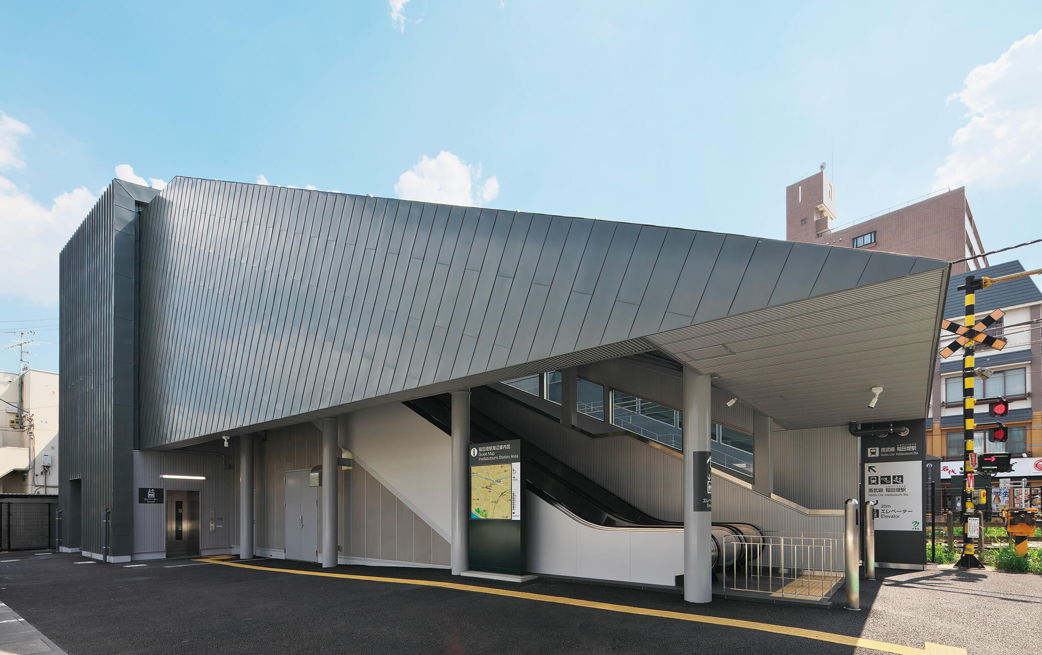 JR南武線稲田堤駅はJR南武線から京王電鉄相模原線への乗り換え駅にあたり、京王稲田堤駅方面の線路南側の自由通路と橋 上の駅施設が2023年に先行開業していた。その後、2024年6月2日に、北側通路が供用開始され、自由通路として全面開通した。この自由通路と橋上駅は、踏切待ちの不便を解消し、鉄道駅へのアクセス性を向上させる一策として、整備したものである。そのため、駅舎へのルートでもある自由通路は、エスカレーターとエレベーターも備え、利用者の上下階移動を容易にしている。